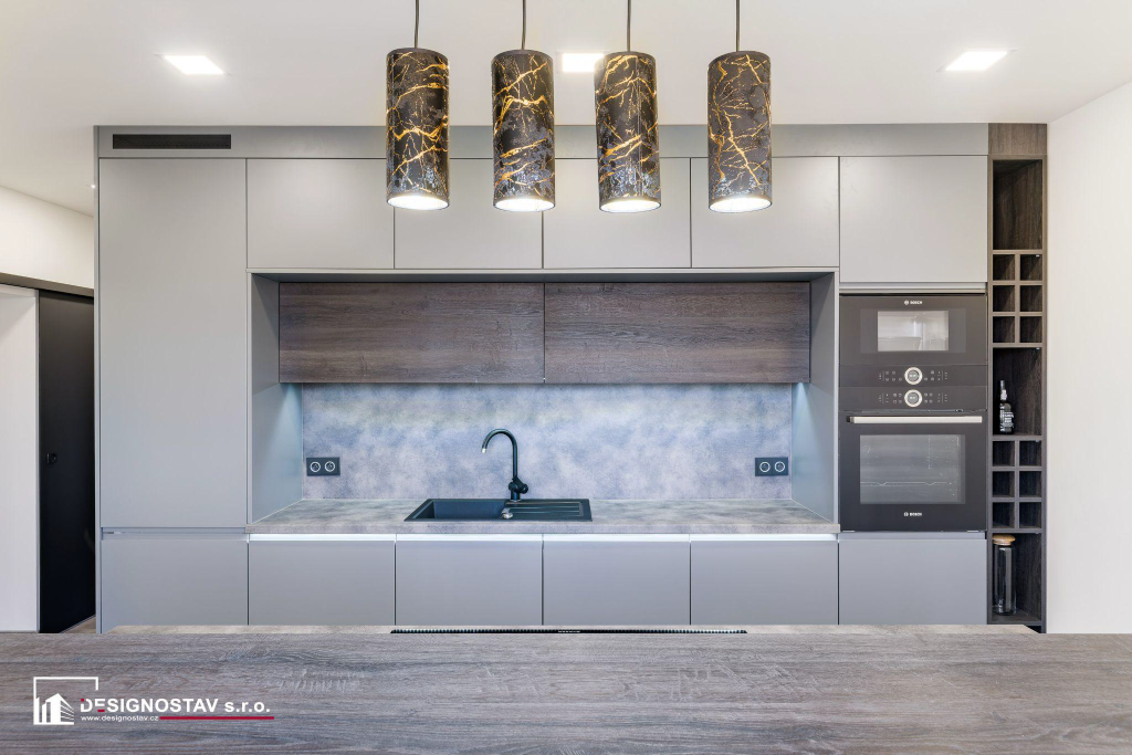Panelákovou kuchyň nemusí tvořit pouze úzká obdélníková místnost s minimem pracovního i volného místa. Vytvoříme vám kuchyň na míru přesně podle vašich představ. Velké množství úložných prostor skvěle doplňuje ostrůvek s barovým pultem, který nejenže rozšiřuje pracovní plochu, ale také vytváří pohodlné místo ke stolování.